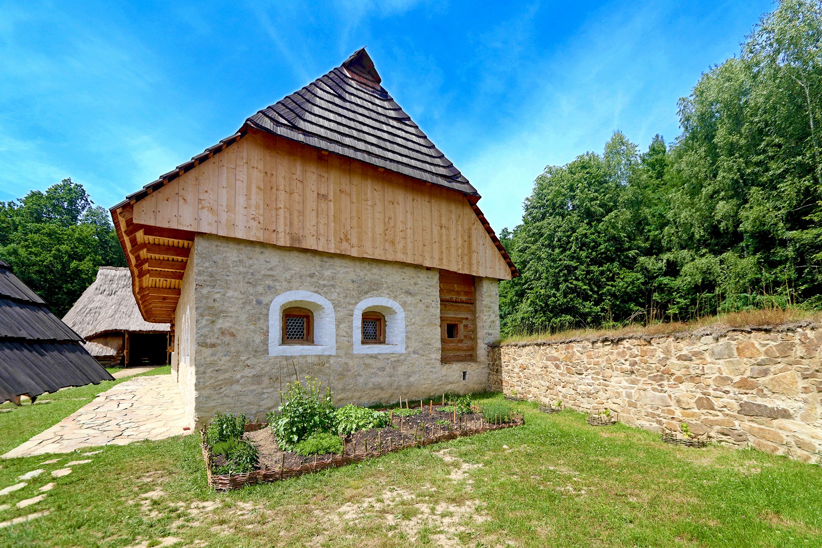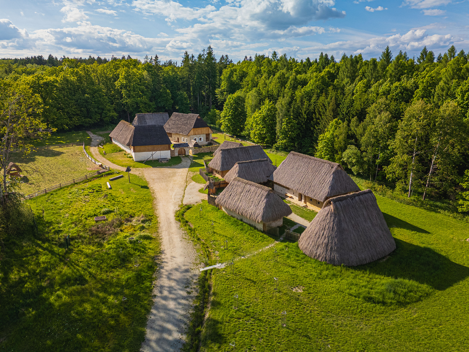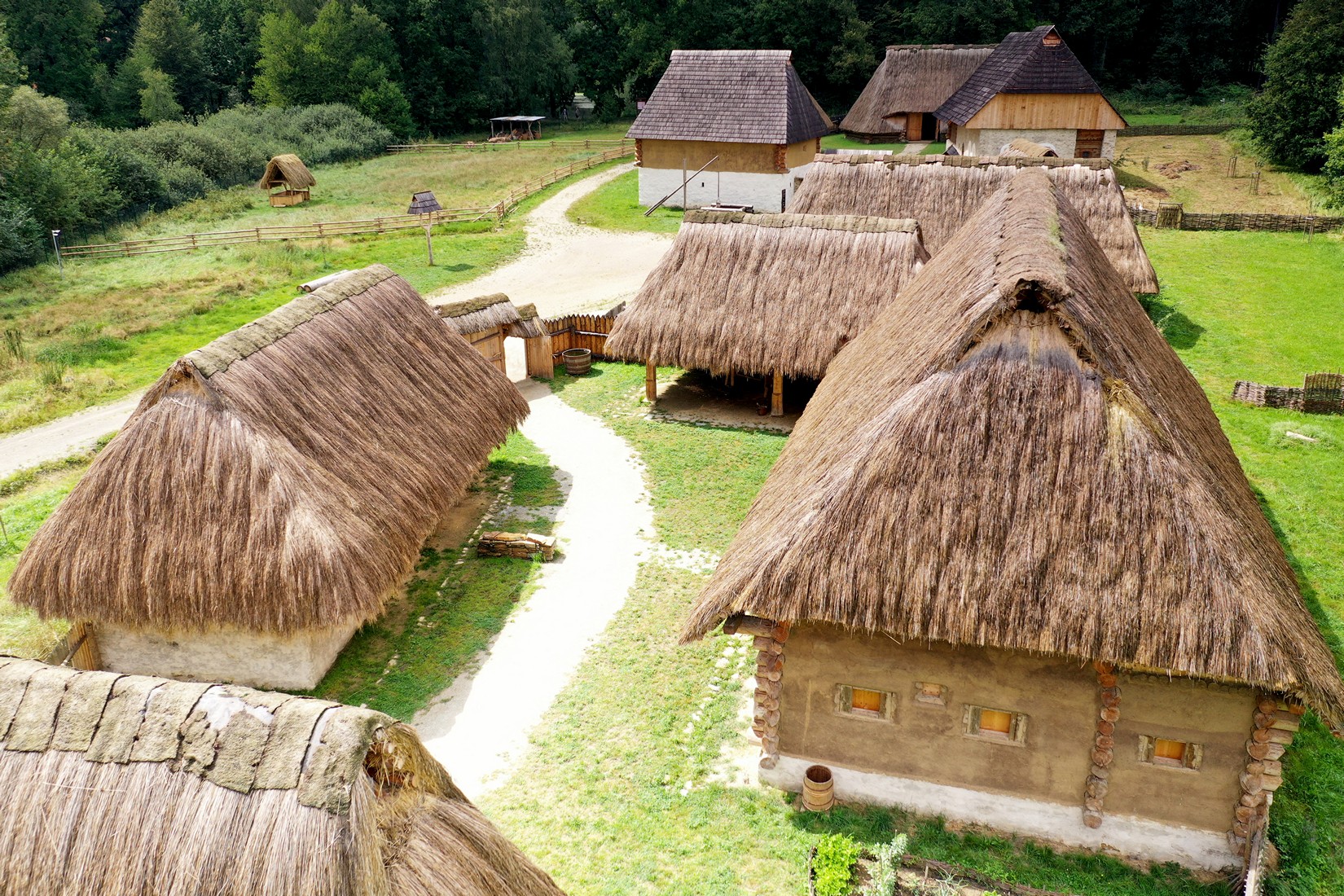 Obydlí bezzemka, chalupníka i dvůr sedláka ukazují podobu jednotlivých typů vesnických staveb v předhusitském období. Stavby doplňují další hospodářské objekty, štěpnice, zahrady, políčka a ohrady s hospodářskými zvířaty. Dotváří tak obraz středověkého venkova a jeho obyvatel.