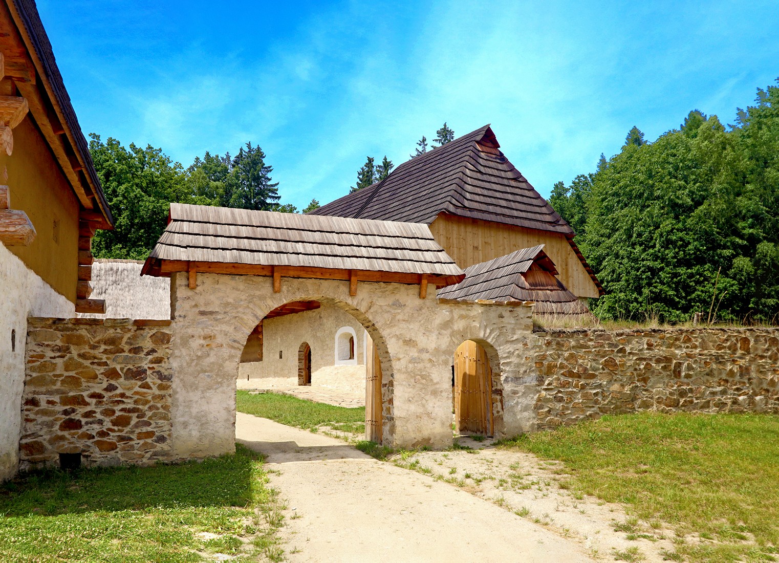 Obytný dům, zbrojnice, sýpka, stáj, stodola a další drobné stavby představují každodenní život níže postaveného urozence a jeho rodiny. Stavby a jejich interiéry dotvářejí obraz hospodaření na podobném typu usedlosti, vybrané řemeslné postupy i vhled do soukromí obyvatel dvorce.